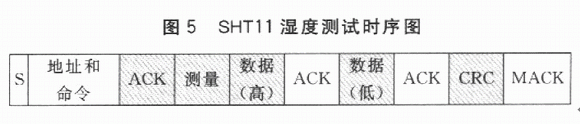 基于以上宏定義和延時函數(shù),可以方便地使SCK和DATA總線輸出持續(xù)一定時間的高電平或低電平,從而可以模擬圖5所示的溫濕度傳感器SHTll的讀寫協(xié)議。