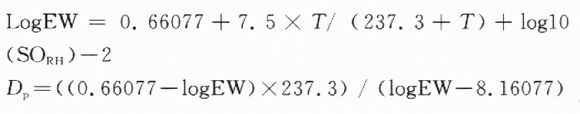 露點是一個特殊的溫度值,是空氣保持某一定濕度必須達到的最低溫度。當空氣的溫度低于露點時,空氣容納不了過多的水分,這些水分會變成霧、露水或霜。露點可以根據(jù)當前相對濕度值和溫度值計算得出,具體的計算公式如下: