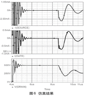 作為典型實(shí)例,諧振頻率在500kHz的范圍內(nèi),從漏極平臺到谷點(diǎn)的電壓變化為100V。根據(jù)式3,一般柵極電流峰-峰值幅度的大小是10mA。負(fù)值部分的范圍是5mA。
