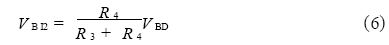 設(shè)二極管正向壓降為VD , 分壓電阻R1、R 2、R 3、R 4 對R0的影響可以用等效電阻R= (R 1 + R 2 ) ∥ (R 3 +R 4) 來表示, 則在正常工作時, 滿足