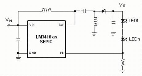 SEPIC轉(zhuǎn)換器擁有連續(xù)輸入電流的優(yōu)點(diǎn),這個(gè)連續(xù)輸入電流是由輸入電感和正輸出電壓產(chǎn)生的。像boost和單電感buck-boost,它們需要一個(gè)輸出電容來維持一個(gè)平滑LED電流。另外一個(gè)SEPIC轉(zhuǎn)換器的優(yōu)點(diǎn)是幾乎任何一個(gè)低端調(diào)節(jié)器或者控制器都可以被設(shè)置成為一個(gè)毋需反偏或測(cè)平移動(dòng)電路的SEPIC。