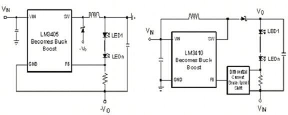 LED電流可以被立即切斷。另外,必須要特別考慮系統(tǒng)回應(yīng)。這樣一個(gè)開路事實(shí)上是一個(gè)快速外部退荷暫態(tài),它斷開了反饋環(huán),引起了調(diào)節(jié)器輸出電壓的的上升。為了避免因?yàn)檫^壓失敗,我們需要輸出鉗制電路和/或誤差放大器。這種鉗制電路很難用外部電路實(shí)現(xiàn),因此,串聯(lián)FET調(diào)光只能用專用Boost/Buck-Boost LED驅(qū)動IC來實(shí)現(xiàn)。