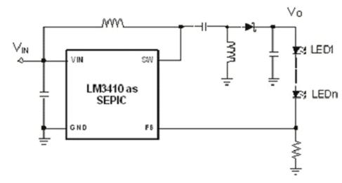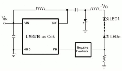 另外,Boost調(diào)節(jié)器不允許輸出電壓下降到輸入電壓以下。這個(gè)條件需要一個(gè)輸入端短電路并且使利用一個(gè)并聯(lián)FET實(shí)現(xiàn)調(diào)光變得不可能。。在Buck-Boost拓?fù)渲?,并?lián)FET調(diào)光仍然不可能或者不切實(shí)際,這是因?yàn)樗枰粋€(gè)輸出電容(SEPIC,Buck-Boost和flyback),或者輸出短電路(Cuk和zeta)中的未受控制得輸入電感電流。當(dāng)需要真正快速PWM調(diào)光的時(shí)候,最好的解決方案是一個(gè)二級系統(tǒng),它利用一個(gè)Buck調(diào)節(jié)器作為第二LED驅(qū)動級。如果空間和成本不允許的時(shí)候,下一個(gè)最好的原則就是一個(gè)串聯(lián)開關(guān)(圖4)。