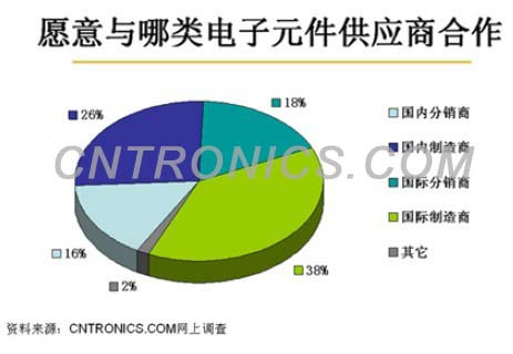 在過去的2008年中,有接近56%的回復(fù)者在選擇供應(yīng)商時(shí),更希望與國際電子元器件制造商和分銷商成為合作伙伴,先進(jìn)的技術(shù)和成熟的管理經(jīng)營機(jī)制及良好的公司信譽(yù)是整機(jī)廠商選擇國際型公司的理由。[page]