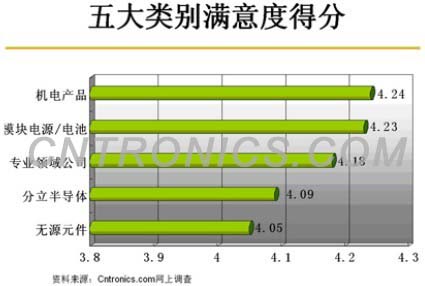 在五大類別的用戶滿意度調(diào)查中,回復(fù)者對機(jī)電類產(chǎn)品和模塊電源/電池類公司滿意度較高,而對無源元件和分立半導(dǎo)體公司滿意度最低,電子元件技術(shù)網(wǎng)調(diào)查分析發(fā)現(xiàn):