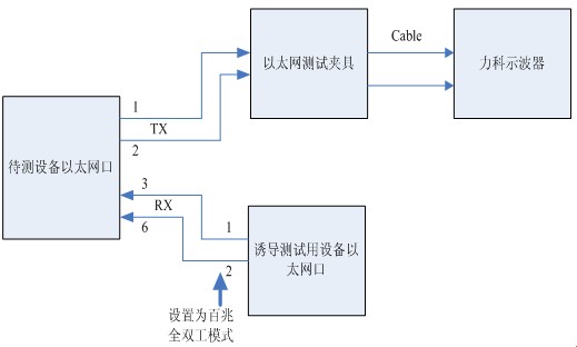 100Base-TX接口的測試采用業(yè)內(nèi)比較通用的誘導(dǎo)發(fā)包的方法來引導(dǎo)DUT發(fā)出擾碼后的IDLE進(jìn)行測試,更多細(xì)節(jié)請參考美國力科公司《Ethernet solution-QualiPHY》專項(xiàng)技術(shù)文檔,