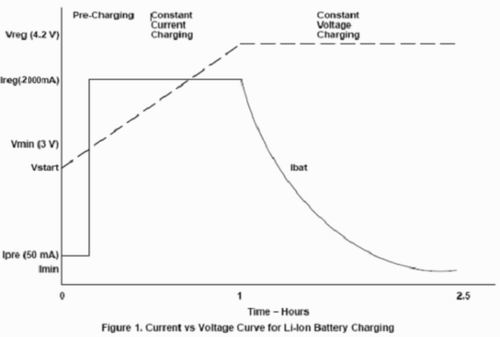 由于MSP430F20X3系列的指令速度可達(dá)16MIPS,且SD_16的采樣速度為4kSPS,而且電池電壓/電流/溫度變化緩慢,因此對電池組中單節(jié)電池電壓/電流/溫度檢測采用輪回檢測即可完全滿足系統(tǒng)設(shè)計需要;16位的高精度保證了對每節(jié)電池溫度、恒流、恒壓等要求的準(zhǔn)確控制。對單節(jié)鋰電池充電的曲線如圖3。