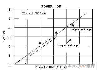 在測試壓差(Dropout)時不同的廠家有不同的標(biāo)準(zhǔn)。德州儀器(TI)電壓差定義為輸出電壓較其標(biāo)稱值跌落2%時的輸入、輸出電壓的差值.其它的如,美信(Maxim),圣邦微電子(SGMC)電壓差定義為輸出電壓較其標(biāo)稱值小于100mV時的輸入、輸出電壓的差值.如圖為圣邦微電子的SGM2007負(fù)載為300mA時輸入電壓和輸出電壓的曲線。