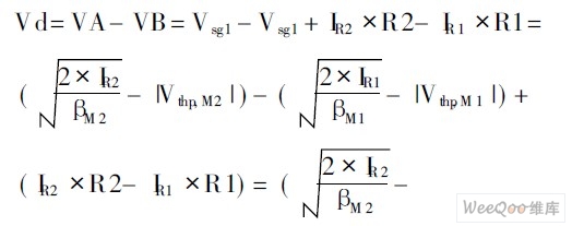 那么利用PMOS的飽和區(qū)電流公式可得M1與M2的具體尺寸。為使此時電壓比較器A1性能更佳,設(shè)定VB為VDD的一半,可求出R2阻值,再根據(jù)公式(2)得到的電阻比例,便可得到R1阻值。
