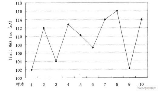 將以上設(shè)計的限流電路嵌入某穩(wěn)壓芯片(內(nèi)含電荷泵電路)中,實現(xiàn)流片量產(chǎn)(CMOS工藝)。當VDD=3V時,通過測量量產(chǎn)芯片得到輸出電流極限數(shù)據(jù)。統(tǒng)計如圖5所示,可知當輸出電流處于100~120mA范圍內(nèi)時,限流電路開始工作,關(guān)閉系統(tǒng)即保護LDO安全。由此可見,本設(shè)計電路結(jié)構(gòu)簡單,功能可靠,可廣泛應用于電源芯片中。