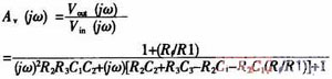 利用理想運(yùn)放的分析方法,求得該電路的頻率特性函數(shù)為: