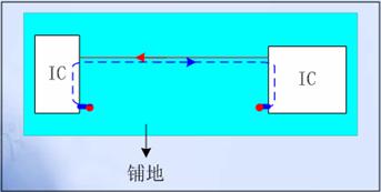 圖5 雙層板的關(guān)鍵信號(hào)線地投影平面上大面積鋪地