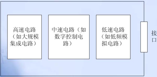 2.多種模塊電路在同一PCB上放置時(shí),數(shù)字電路與模擬電路、高速與低速電路應(yīng)分開布局,以避免數(shù)字電路、模擬電路、高速電路以及低速電路之間的互相干擾。另外,當(dāng)線路板上同時(shí)存在高、中、低速電路時(shí),為了避免高頻電路噪聲通過(guò)接口向外輻射,應(yīng)該遵從圖7中的布局原則。