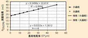 基底電阻率的變化會(huì)給RDS(on)測(cè)量結(jié)果帶來(lái)線性響應(yīng)。圖3顯示了遠(yuǎn)遠(yuǎn)超出實(shí)際基底正常分布的基底電阻率。這樣做是為了顯示響應(yīng)是線性的。
