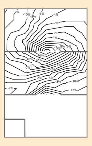 另一種測(cè)量偏差來(lái)源是探針的布局。如果移動(dòng)了強(qiáng)制電流探針,電流的分布模式將發(fā)生變化。這會(huì)改變電壓梯度模式,而且會(huì)改變電壓檢測(cè)探針處的電壓。