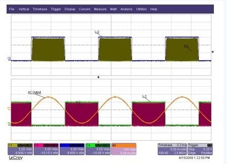 在圖1中, Q1 和Q3被指定為高壓側(cè)IGBT,Q2 和Q4 則是低壓側(cè) IGBT。 該逆變器用于在其目標(biāo)市場(chǎng)的頻率和電壓條件下,產(chǎn)生單相位正弦電壓波形。有些逆變器用于連接凈計(jì)量效益電網(wǎng)的住宅安裝,這就是其中一個(gè)目標(biāo)應(yīng)用市場(chǎng),此項(xiàng)應(yīng)用要求逆變器提供低諧波交流正弦電壓,讓電力可注入電網(wǎng)中