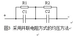 最簡單的電壓均衡措施是在每個(gè)超級(jí)電容器兩端并接電阻,如圖3。