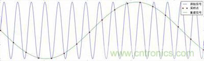 簡(jiǎn)單溫習(xí)奈奎斯特采樣定理:如果信號(hào)是帶限的,且采樣頻率Fs高于信號(hào)最高頻率Fmax的兩倍,采樣樣本中完整地保留了原始信號(hào)中的信息。而高于或等于采樣頻率的一半頻率分量,則會(huì)導(dǎo)致混疊現(xiàn)象,如圖 5所示由于采樣頻率過小,每個(gè)信號(hào)周期樣本數(shù)量太少,重建后的波形頻率分量落到低于采樣頻率的頻率范圍中,與原始信號(hào)大相徑庭。
