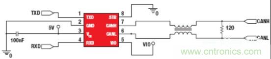 此外,當(dāng)CANH和CANL線路在顯性和隱性狀態(tài)之間變換時,它們之間的變換時間和定時偏移需要良好匹配,以限制出現(xiàn)在高頻頻帶內(nèi)的共模噪聲。