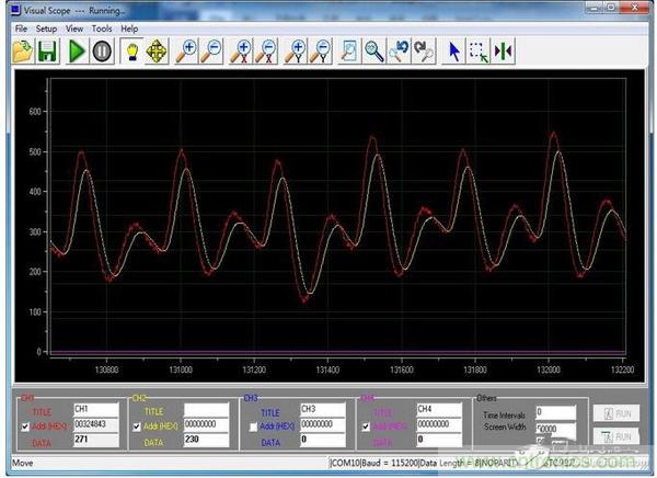LDO本身的電壓輸出非常穩(wěn)定,由于筆者ADC采樣為10位,在手指未放入傳感器時(shí),電壓值幾乎保持在3/1024以內(nèi)跳動(dòng)。所以筆者默認(rèn)這款LDO能達(dá)0.3%以下的精度。下圖便是筆者關(guān)于LDO給模擬部分供電后的心率采樣波形。紅色為一階低通濾波前的波形,黃色為低通濾波后的波形。對實(shí)時(shí)性要求不高的系統(tǒng)來說,這樣的模擬量波形已經(jīng)能夠滿足項(xiàng)目的需求。