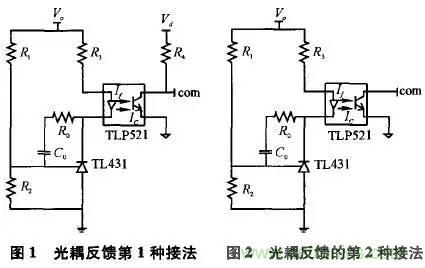 本研究將詳細分析光耦工作原理,并針對光耦反饋的幾種典型接法加以對比研究。1、常見的幾種連接方式及其工作原理常用于反饋的光耦型號有TLP521、PC817等。這里以TLP521為例,介紹這類光耦的特性。TLP521的原邊相當于一個發(fā)光二極管,原邊電流If越大,光強越強,副邊三極管的電流Ic越大。副邊三極管電流Ic與原邊二極管電流If的比值稱為光耦的電流放大系數(shù),該系數(shù)隨溫度變化而變化,且受溫度影響較大。作反饋用的光耦正是利用“原邊電流變化將導致副邊電流變化”來實現(xiàn)反饋,因此在環(huán)境溫度變化劇烈的場合,由于放大系數(shù)的溫漂比較大,應盡量不通過光耦實現(xiàn)反饋。此外,使用這類光耦必須注意設計外圍參數(shù),使其工作在比較寬的線性帶內,否則電路對運行參數(shù)的敏感度太強,不利于電路的穩(wěn)定工作。通常選擇TL431結合TLP521進行反饋。這時,TL431的工作原理相當于一個內部基準為2.5V的電壓誤差放大器,所以在其1腳與3腳之間,要接補償網絡。TL431是三端可編程并聯(lián)穩(wěn)壓二極管開關電源中光耦的作用