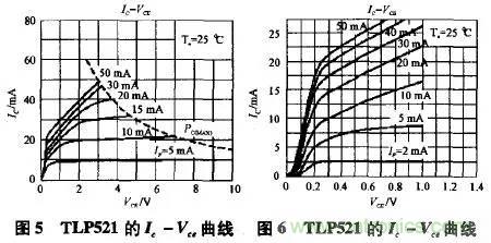 2、各種接法的比較在比較之前,需要對實際的光耦TLP521的幾個特性曲線作一下分析。首先是Ic-Vce曲線,如圖5,圖6所示。開關電源中光耦的作用