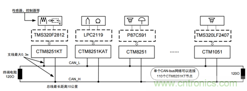 與485類似,CAN-bus也是以總線的方式進(jìn)行通信的,所有的CAN節(jié)點(diǎn)都掛在一對差分線上。但CAN總線中的節(jié)點(diǎn)不存在主從的概念,當(dāng)節(jié)點(diǎn)有數(shù)據(jù)需要上傳時(shí)可自主、即時(shí)發(fā)送,先進(jìn)的仲裁機(jī)制保證數(shù)據(jù)不會沖突。