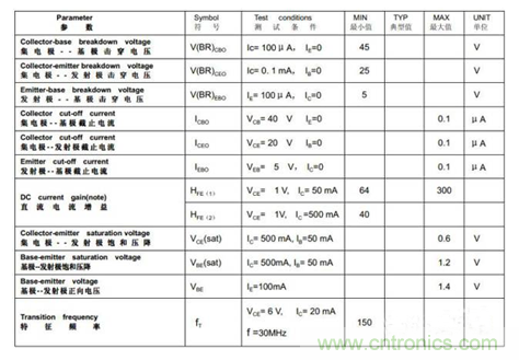 解答:這個(gè)值應(yīng)該是不固定的,它和集電極負(fù)載、β值有關(guān),估算是這樣的:假定負(fù)載電阻是1K,VCC是5V,飽和時(shí)電阻通過電流最大也就是5mA,用除以該管子的β值(假定β=100)5/100=0.05mA=50μA,那么基極電流大于50μA就可以飽和。對于9013、9012而言,飽和時(shí)Vce小于0.6V,Vbe小于1.2V。下面是9013的特性表: