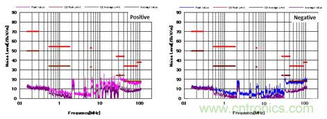 圖9 C5標(biāo)準(zhǔn)下的噪聲特性(帶CM,DM濾波器以及屏蔽金屬盒)