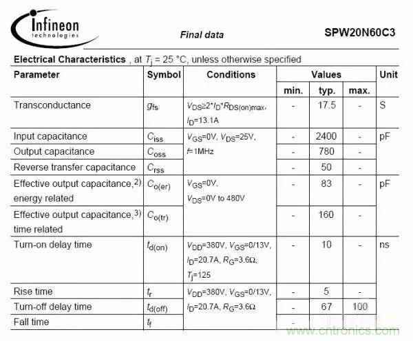 參照以上兩圖,是不同型號(hào)的MOS管,對(duì)比下輸入結(jié)電容和輸出結(jié)電容,2400PF與800PF;780PF與2200PF;一看就知道第一個(gè)規(guī)格是快管,第二個(gè)是慢管,這時(shí)候決定開(kāi)關(guān)速度還要與驅(qū)動(dòng)電阻匹配;常規(guī)情況驅(qū)動(dòng)電阻在10R-150R比較多,選取驅(qū)動(dòng)電阻與結(jié)電容有關(guān),針對(duì)快板驅(qū)動(dòng)電阻可適當(dāng)增大,慢管驅(qū)動(dòng)電阻可適當(dāng)減?。?對(duì)于二極管,有肖特基二極管,快回復(fù)二極管,普通二極管,還有一種用的比較少的SIC二極管,開(kāi)關(guān)速度SIC二極管幾乎為零,等于是沒(méi)有反向恢復(fù),開(kāi)關(guān)輻射最小,并且損耗也最小,唯一的缺點(diǎn)就是價(jià)格昂貴,故很少用;其次就是肖特基二極管,正向壓降低,反向恢復(fù)時(shí)間短,依次是快回復(fù)和普通二極管;需要在損耗和EMC之間折中;一般可采取改吸收以及套磁珠等措施整改EMC;