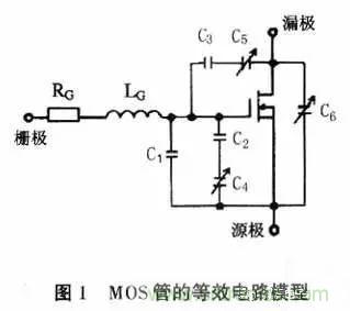 MOS管的等效電路模型及寄生參數(shù)如圖1所示。圖1中各部分的物理意義為: