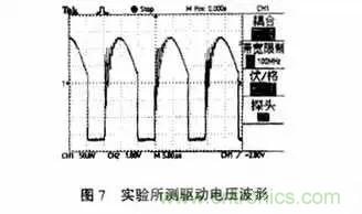 根據(jù)如前所述,驅動電壓、電流的理想波形不應該是一條直線,而應該是如圖6所示的波形。實驗波形見圖7。