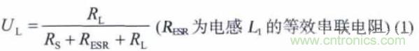 式(1)表明加入電感L 將使UL 變小,影響電源的負載調(diào)整率。若要使輸出電壓穩(wěn)定,應(yīng)選用等效串聯(lián)電阻小的電感器件,電感器的等效串聯(lián)電阻由其繞制導(dǎo)線的直流電阻決定。