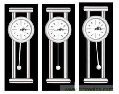 最后由于摩擦的作用,任何物理振蕩都會停止。要繼續(xù)運動,必須在每次循環(huán)中添加少許能量。在擺鐘里,保持鐘擺移動的能量來自彈簧。鐘擺在每次敲鐘時都得到一點推力,以彌補因摩擦而失去的能量。
