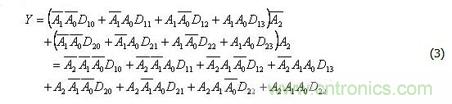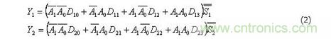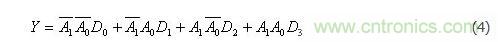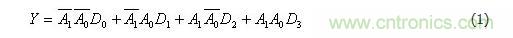 由表2可知,具有兩位地址輸入A0、A1的4選1數(shù)據(jù)選擇器,當(dāng)使能控制端=0時,輸出與輸入之間的邏輯關(guān)系式為