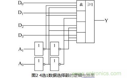 由邏輯表達(dá)式畫出4選1數(shù)據(jù)選擇器邏輯電路2所示。