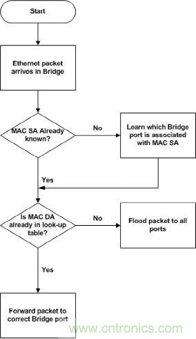 在圖1中,如果傳入幀的源地址(SA)以前沒有記錄,則將其與幀的傳入端口號一起添加到地址數(shù)據(jù)庫中。如果目標(biāo)地址(DA)已經(jīng)存在于網(wǎng)橋的查找表中,則數(shù)據(jù)包會相應(yīng)地轉(zhuǎn)發(fā),否則幀將被泛洪處理。多年來,管理L2所用協(xié)議的IEEE標(biāo)準(zhǔn)(如802.1 MAC橋、VLAN和基于端口的網(wǎng)絡(luò)訪問控制標(biāo)準(zhǔn))都集中在以太網(wǎng)幀的前16個字節(jié)。這些標(biāo)準(zhǔn)也在不斷發(fā)展,最近增加的包括以太網(wǎng)音視頻橋接技術(shù)(AVB)和時間敏感網(wǎng)絡(luò)標(biāo)準(zhǔn)(如802.1AS)。特別是,在汽車環(huán)境中對確定性網(wǎng)絡(luò)的需求正變得越來越急迫,以確保網(wǎng)絡(luò)中及時和可靠的數(shù)據(jù)傳輸。將所有ECU鎖定在單個主時鐘源并保持AV內(nèi)容質(zhì)量只是其中兩個例子,更多增強的功能還在引入以便于檢查OSI 3層信息,例如IPv4 / IPv6數(shù)據(jù)包優(yōu)先級和IPv4 / IPv6偵聽。