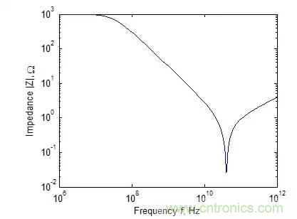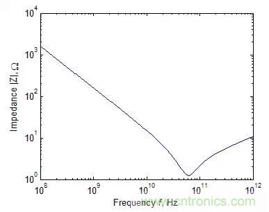 一個典型的1pF電容阻抗絕對值與頻率的關(guān)系
