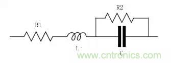 片狀電容在射頻電路中的應(yīng)用十分廣泛,它可以用于濾波器調(diào)頻、匹配網(wǎng)絡(luò)、晶體管的偏置等很多電路中,因此很有必要了解它們的高頻特性。電容的高頻等效電路如圖所示,其中L為引線的寄生電感;描述引線導(dǎo)體損耗用一個串聯(lián)的等效電阻R1;描述介質(zhì)損耗用一個并聯(lián)的電阻R2。