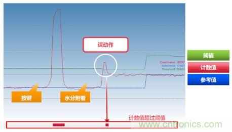 由于潮濕的表面,會增加電容量。即使在潮濕的表面,也能正確識別按鍵,從而避免了電容自感方式下的觸摸誤動作。