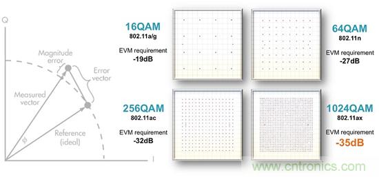 不同調(diào)變階數(shù)的EVM指標(biāo)要求