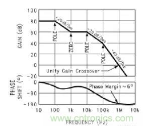看似上面的分析比較復(fù)雜,其實是自動控制理論里面的傳輸函數(shù)和根跡圖的概念.簡單的說,一個(線形)系統(tǒng)是否穩(wěn)定(不會產(chǎn)生振蕩)取決于它的傳輸函數(shù)的極點分布.(極點的實部必須小于零),而且極點實部負(fù)數(shù)的絕對值越大,系統(tǒng)越穩(wěn)定.我們就可以通過增加極點或是零點來調(diào)節(jié)相位裕度,從而使系統(tǒng)達(dá)到穩(wěn)定。