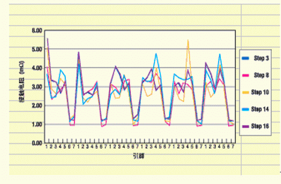 通過六條電纜、七個接觸件對接觸電阻的測試,共得到42個數(shù)據(jù)。一至五與六、七接觸件的區(qū)別可以由電纜規(guī)格的不同來說明:一至五的規(guī)格是24AWG,而六和七的是26AWG。