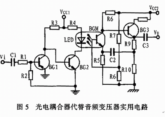 在線性電路中,兩級(jí)放大器之間常用音頻變壓器作耦合。這種耦合的缺點(diǎn)是會(huì)在變壓器鐵芯片中損耗掉一部分功率,并可能造成某些失真。而如果選用光電耦合器來(lái)代替音頻變壓器就可以克服上述這些缺點(diǎn)。