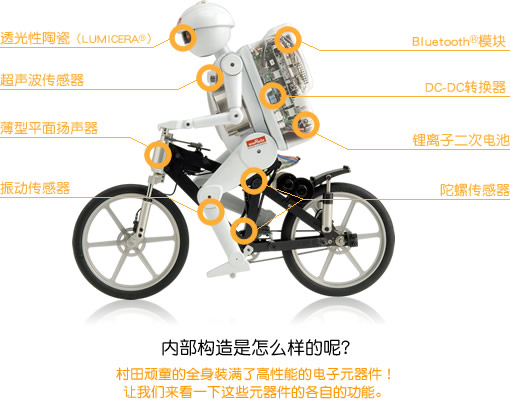 村田制作所在本屆高交會上展示了會騎單車的小機(jī)器人——村田頑童,每次演示都吸引了大量觀眾。村田頑童是村田制作所2005年發(fā)布的,至今已經(jīng)3周歲,但是他那精湛的騎單車技術(shù)仍然吸引了眾多觀眾的駐足。