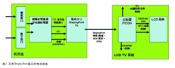 為采用DisplayPort 接口的一個電視面板的框圖。