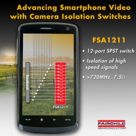 FSA1211具有超過720MHz的帶寬和高ESD (5.5 kV)特性,是高速數(shù)據(jù)路徑上隔離電容和保持信號(hào)完整性的最佳解決方案。此外,當(dāng)隔離多余的并行接口時(shí),F(xiàn)SA1211可以減小信號(hào)路徑上的EMI輻射干擾,提升射頻靈敏度降幅 (RF desense)。傳統(tǒng)的并行解決方案由于產(chǎn)生額外的“走線分支”(stub),所以會(huì)導(dǎo)致信號(hào)衰減,從而使相機(jī)模塊的圖像劣化。采用三個(gè)模擬開關(guān)抑或是一種解決方案,但這會(huì)增加設(shè)計(jì)的復(fù)雜程度,并提高了整體材料清單 (BOM) 成本。相比而言,F(xiàn)SA1211以更為優(yōu)勢的成本提供了穩(wěn)健的隔離性能和簡單的設(shè)計(jì)方法。