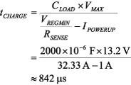 選擇MOSFET之前必須確定負(fù)載電容充電所需的時間。在上電階段,由于負(fù)載電容的浪涌電流效應(yīng),控制器通常會達(dá)到電流限制。如果TIMER引腳設(shè)置的時間不足以允許負(fù)載電容完成充電,那么MOSFET將被禁用,系統(tǒng)無法上電。我們可以使用下列公式來確定理想的充電時間:
