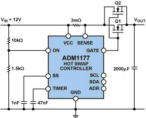 盡管切斷或開啟的電流會比較大,但大電流設(shè)計的一些微妙之處卻常常未得到充分的考慮。“細(xì)節(jié)決定成敗”,本文將重點(diǎn)分析熱插拔控制電路中各部件的功能及重要性,并深入分析在設(shè)計過程中使用ADI公司ADM11773熱插拔控制器時的設(shè)計考慮和器件選型標(biāo)準(zhǔn)。