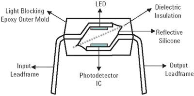 光學耦合器的工作基礎是LED發(fā)出的光通過透明的絕緣介質到光電探測器,這種介質提供2.5kV-6kV范圍的高壓絕緣。光耦合程度取決于光導材料。絕緣將通過光導材料本身或通過額外的光傳導介電材料實現(xiàn)。在任何情況下,LED的排列、光導材料、介電材料和IC都會直接影響光耦合和高壓絕緣的性能。